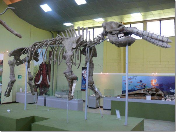 Esqueletos de gonfoterio y perezoso terrestre en el Museo de Estanzuela, Zacapa.